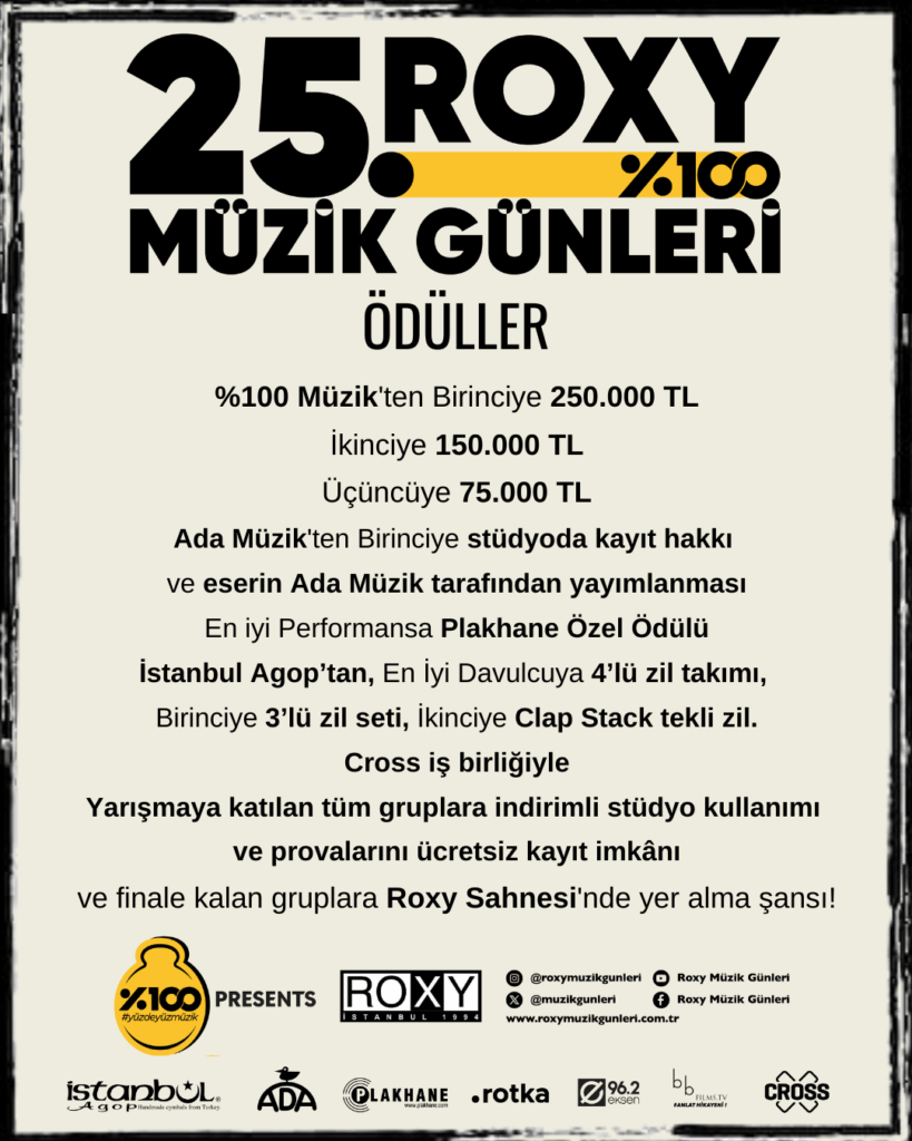 Genç müzisyenlere sahne deneyimi, profesyonel kayıt olanakları ve önemli ödüller sunan Roxy Müzik Yarışması, yeni müzik üretimlerinin ortaya çıkmasına destek olmaya devam ediyor.